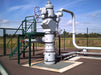 The high-pressure wellhead running tool operates just like the conductor wellhead running tool, but it runs the high-pressure wellhead and 20-in. casing. It is a cam-actuated tool that minimizes any high torque that may be encountered during operations.